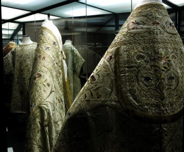 paliotto bizzantino sec. X, pala d'atare sec. XV, mantellina di Papa Paolo III Farnese, affreschi, dipinti, paramenti e tessuti, oggetti artistici in bronzo, oro, argento e ferro.